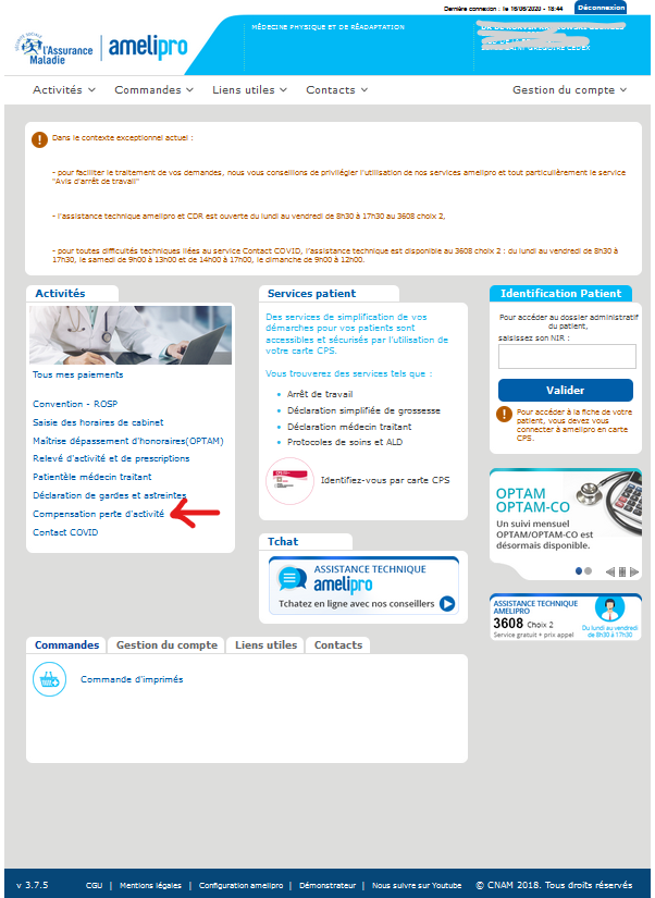 Quand la page de votre espace AMELI PRO s’ouvre, vous allez à